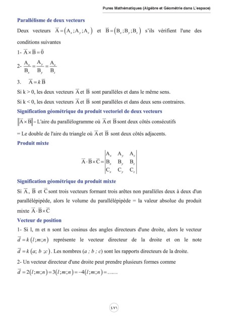 Pures Mathématiques (Algébre et Géométrie dans L’espace) 471