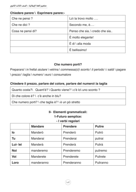الصف الثالث الثانوي- مفاهيم اللغة الإيطالية