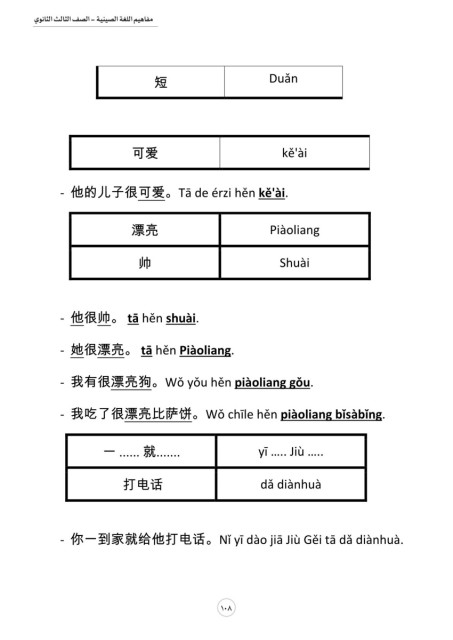 الصف الثالث الثانوي- مفاهيم اللغة الصيني�ة Duǎn