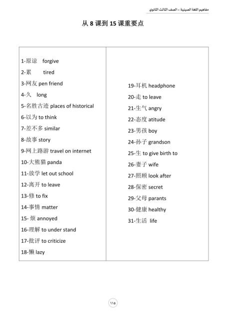 الصف الثالث الثانوي- مفاهيم اللغة الصيني�ة
