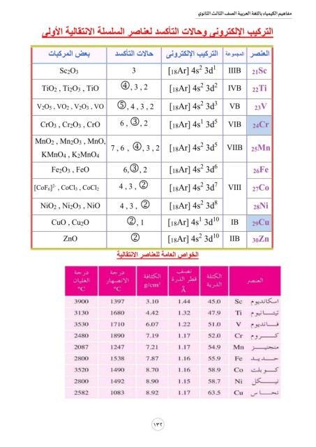 التركيب الإلكترونى وحالات التأكسد لعناصر السلسلة الانتقالية الأولى
