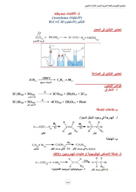 )2C2H2(g) + 3O2(g )Δ 2CO2(g) + 2H2O(v) + 2C(s خواص الإيثاين: