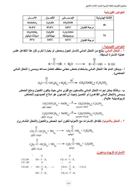 - ١التحلل المائي :ينتج من التحلل المائي للستر كحول وحمض أو بعبارة أخرى فإن هذا التفاعل عكس