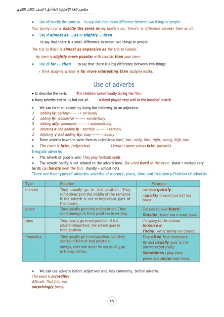 ● Many adverbs end in -ly but not all. Waleed played very well in the handball match