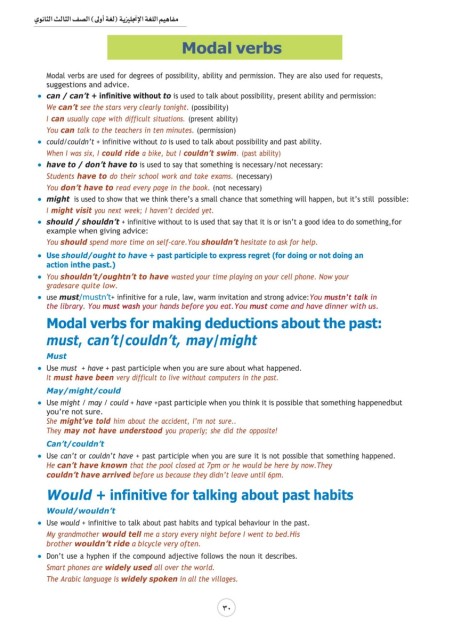 Modal verbs are used for degrees of possibility, ability and permission. They are also used for requests,