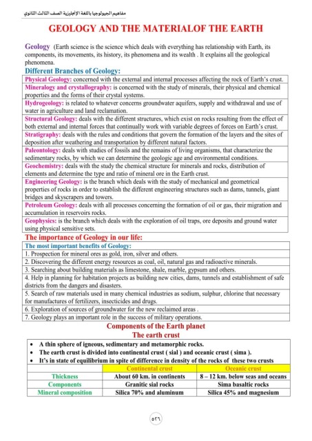 مفاهيم الجيولوجيا باللغة الإنجليزية الصف الثالث الثانوي 526