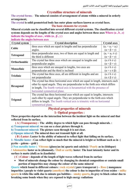 مفاهيم الجيولوجيا باللغة الإنجليزية الصف الثالث الثانوي 533