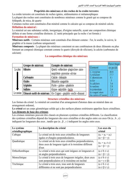 مفاهيم الجيولوجيا باللغة الفرنسية الصف الثالث الثانوي 577