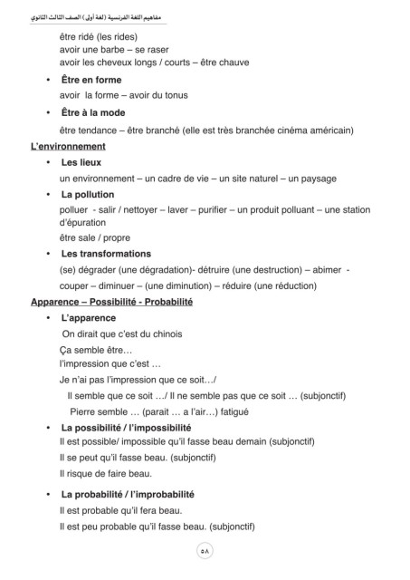 مفاهيم اللغة الفرنسية (لغة أولى) الصف الثالث الثانوي