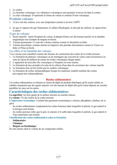 مفاهيم الجيولوجيا باللغة الفرنسية الصف الثالث الثانوي 583