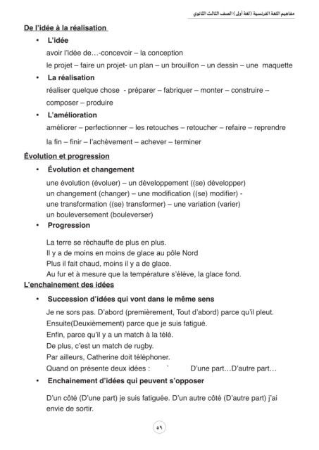 مفاهيم اللغة الفرنسية (لغة أولى) الصف الثالث الثانوي