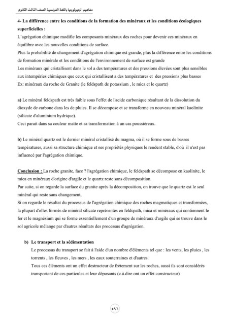 مفاهيم الجيولوجيا باللغة الفرنسية الصف الثالث الثانوي