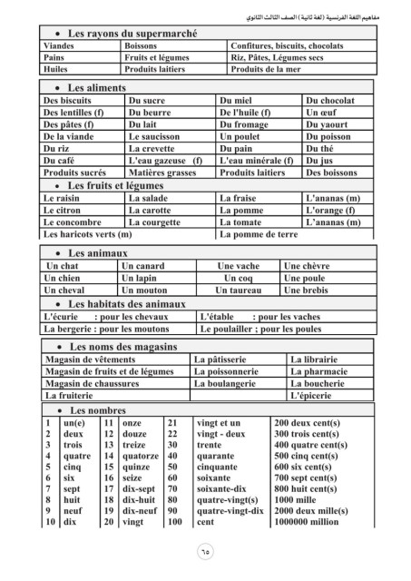 Les rayons du supermarché مفاهيم اللغة الفرنسية (لغة ثاني�ة) الصف الثالث الثانوي