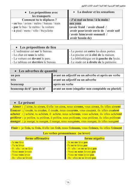 Les prépositions avec مفاهيم اللغة الفرنسية (لغة ثاني�ة) الصف الثالث الثانوي