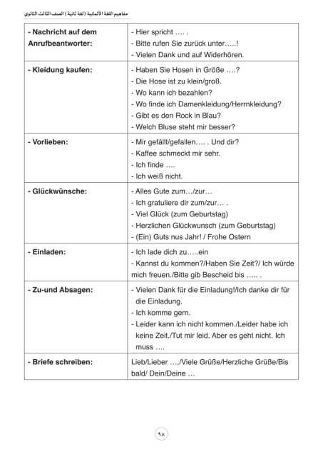 مفاهيم اللغة الألماني�ة (لغة ثاني�ة) الصف الثالث الثانوي