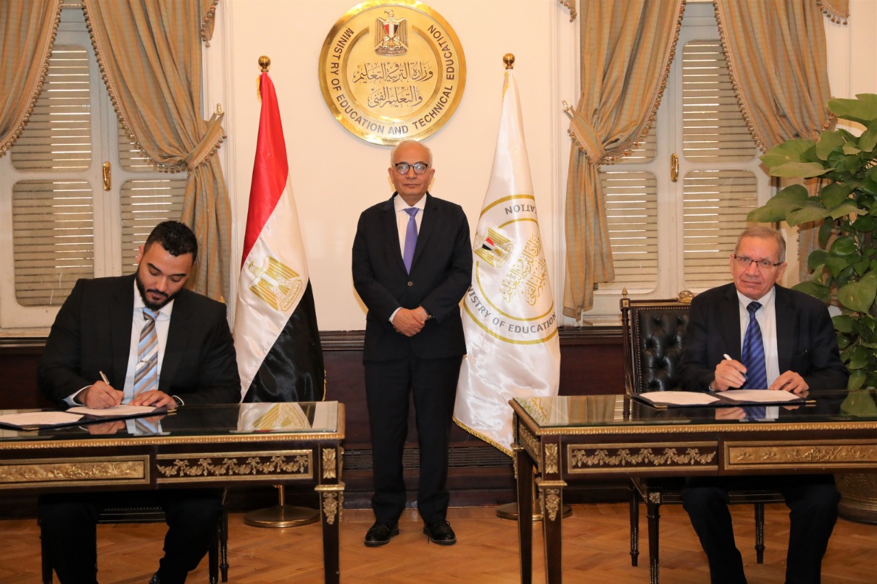 شهد الدكتور رضا حجازى وزير التربية والتعليم والتعليم الفني، اليوم، بروتوكول تعاون مشترك مع شركة لينة للتنمية السياحية والعمرانية؛ بشأن إنشاء مدرسة لينة للتكنولوجيا التطبيقية للبنين، التابعة لإدارة الواحات البحرية، بمحافظة الجيزة.
